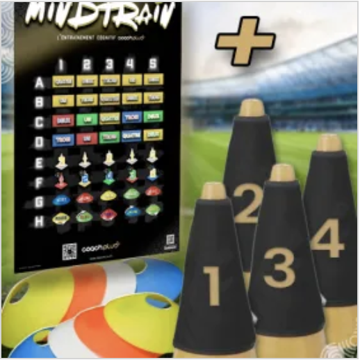 Le Poster A2 Mindtrain est un support d’entraînement dédié au développement cognitif, moteur et perceptif des joueurs. Il permet de travailler la concentration, la coordination, la prise d’informations, la vitesse de décision et la qualité technique. Sa conception est basée sur la méthodologie Mindtrain, qui associe motricité, perception et prise de décision pour optimiser l’apprentissage et le développement des compétences. Ce poster peut être utilisé lors d’une séance de football, en multisport, en école, en cabinet de psychomotricité ou à domicile. Il constitue un outil simple à mettre en place mais très puissant pour stimuler l’attention et la réactivité.